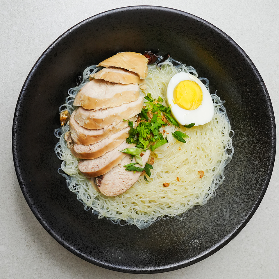 - 4. Kocok lepas kuning telur dalam mangkok, tuang kuah rempah, tata PROFESSIONAL BIHUN JAGUNG 0.7. Tambahkan irisan dada ayam dan pelengkap sesuai selera. Sajikan selagi hangat.